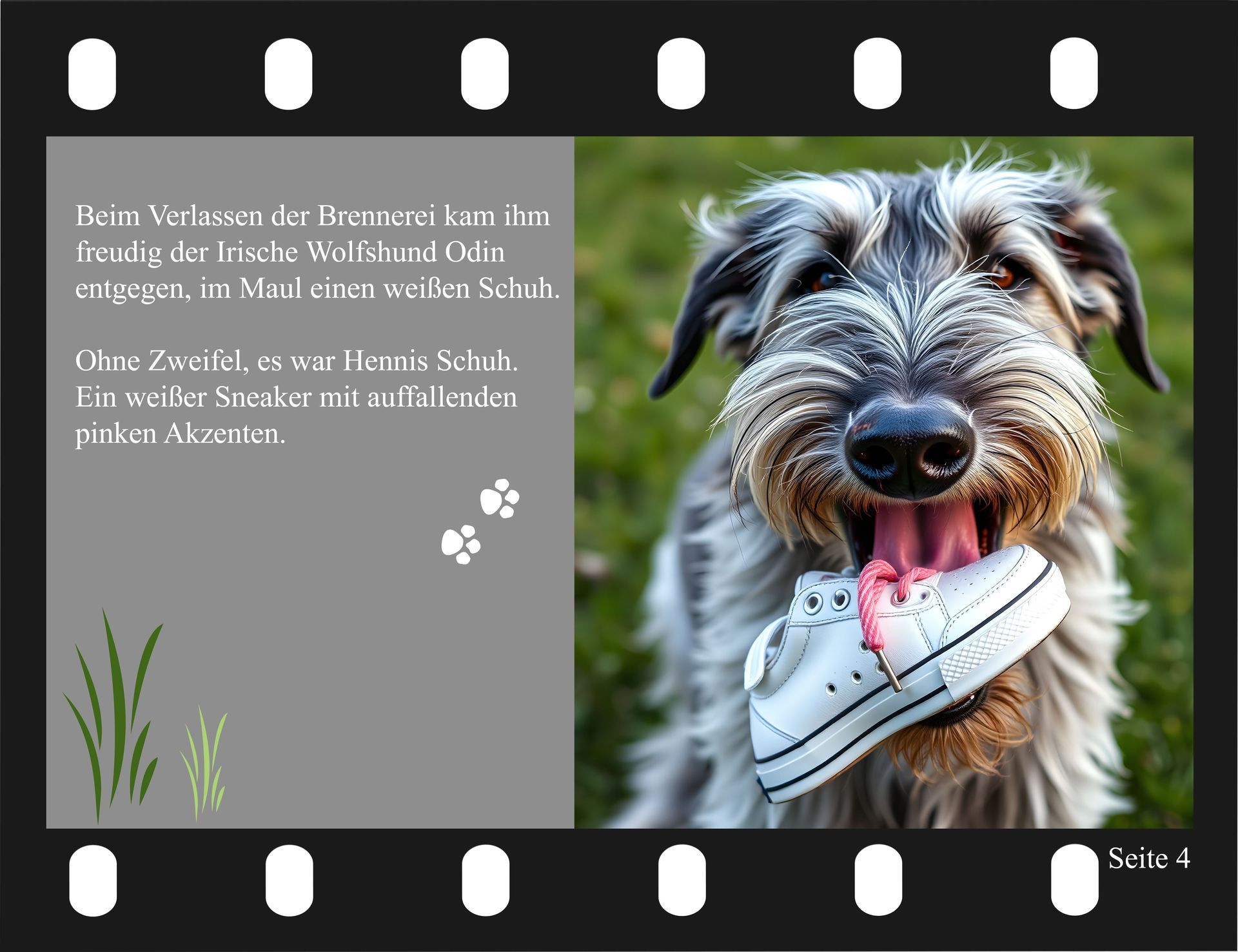 Wo ist Henni und warum hat Odin der Irische Wolfshund des Grafen Hennis Schuh im Maul?