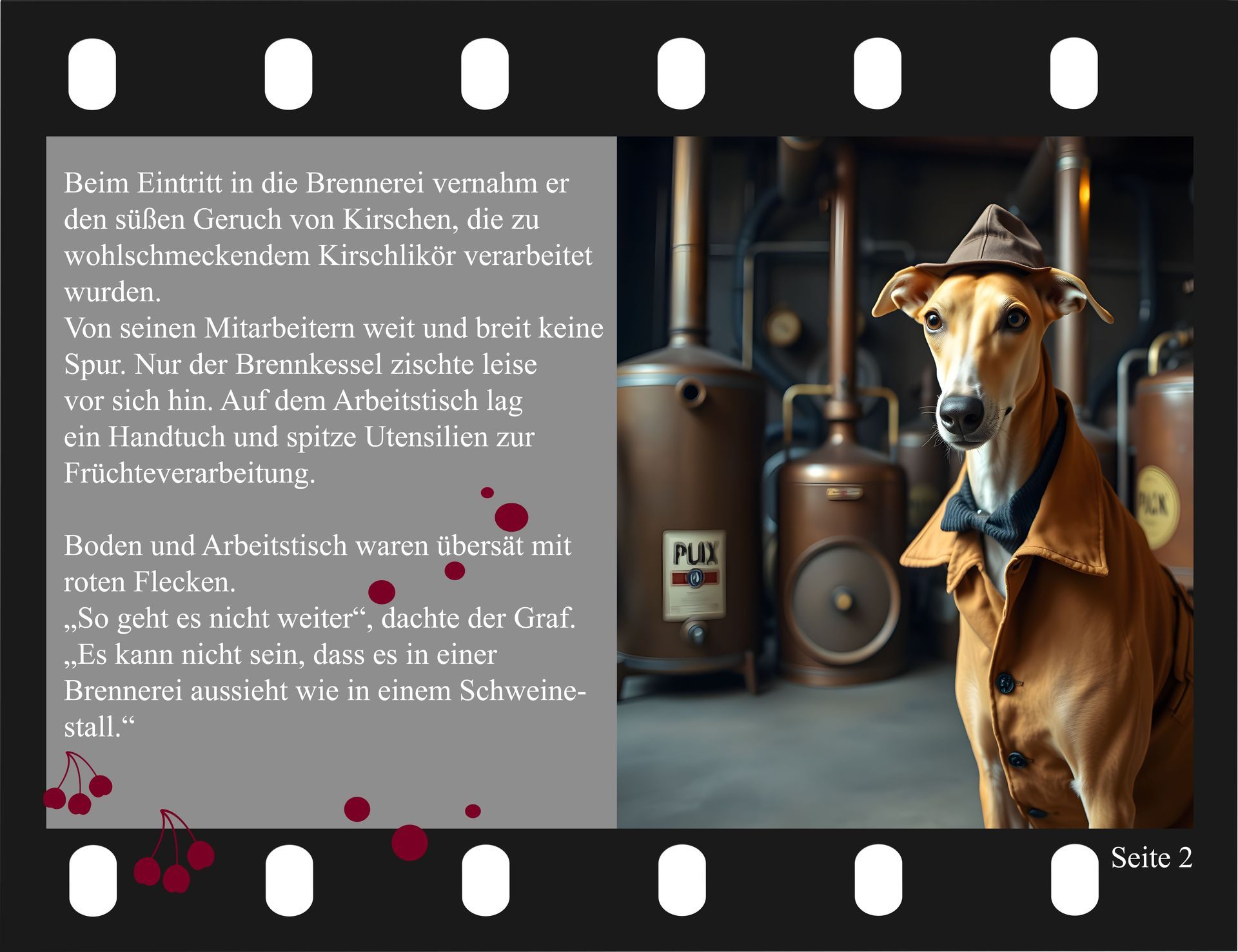 Beim Eintritt in die Brennerei vernahm er den süße Geruch von Kirschen, die zu wohlschmeckendem Kirschlikör verarbeitet wurden.