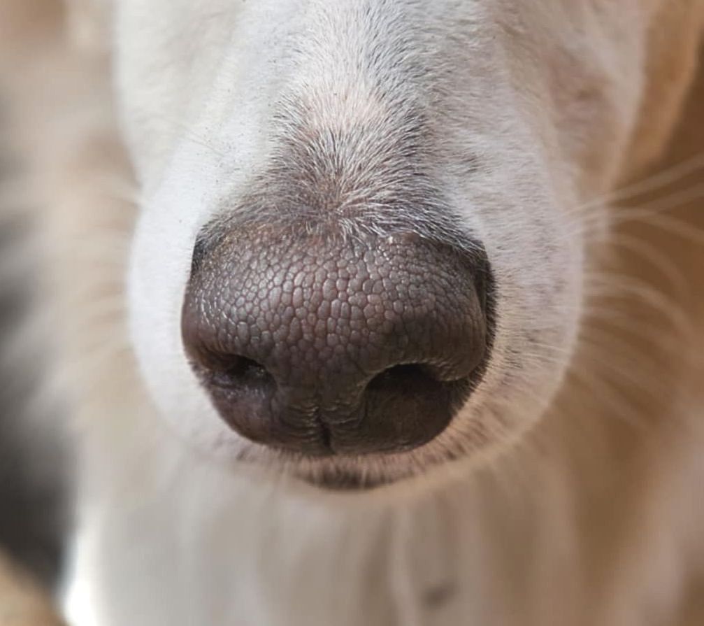 Eines haben allerdings alle cremefarbenen Hunde gemeinsam, ihren hellen Nasenspiegel (Wechselnase) und ihre zwei rezessiven Allele am E-Lokus (e/e).
