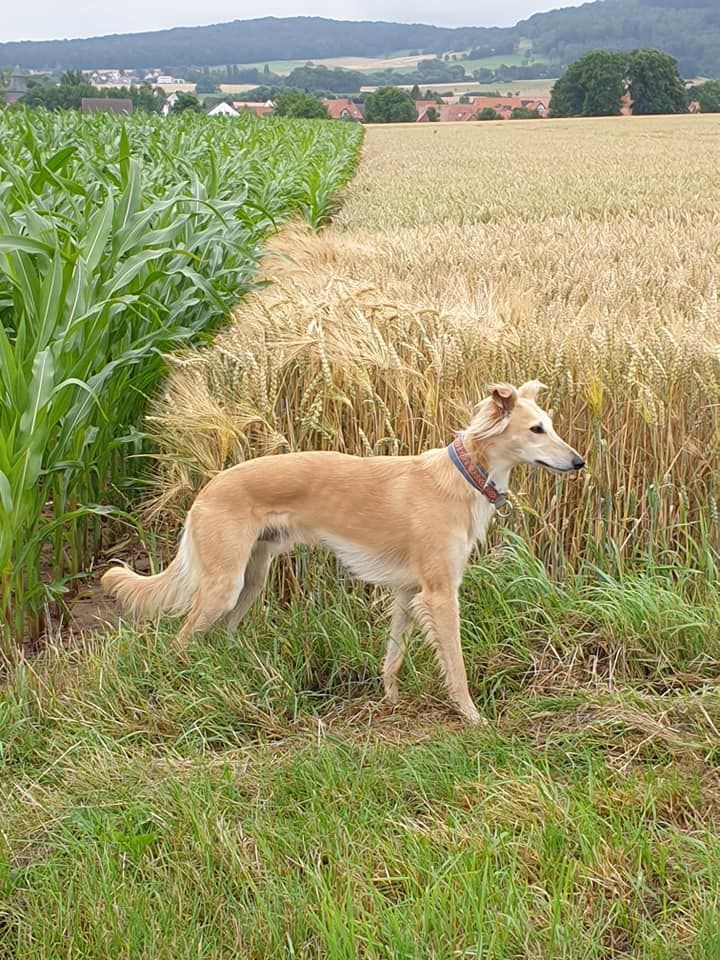 Beim Silken Windsprite kann die Farbe auf weißgrundigem Fell mit cremefarbenen Platten, als creme mit Abzeichen oder als Vollfarbe vorkommen.