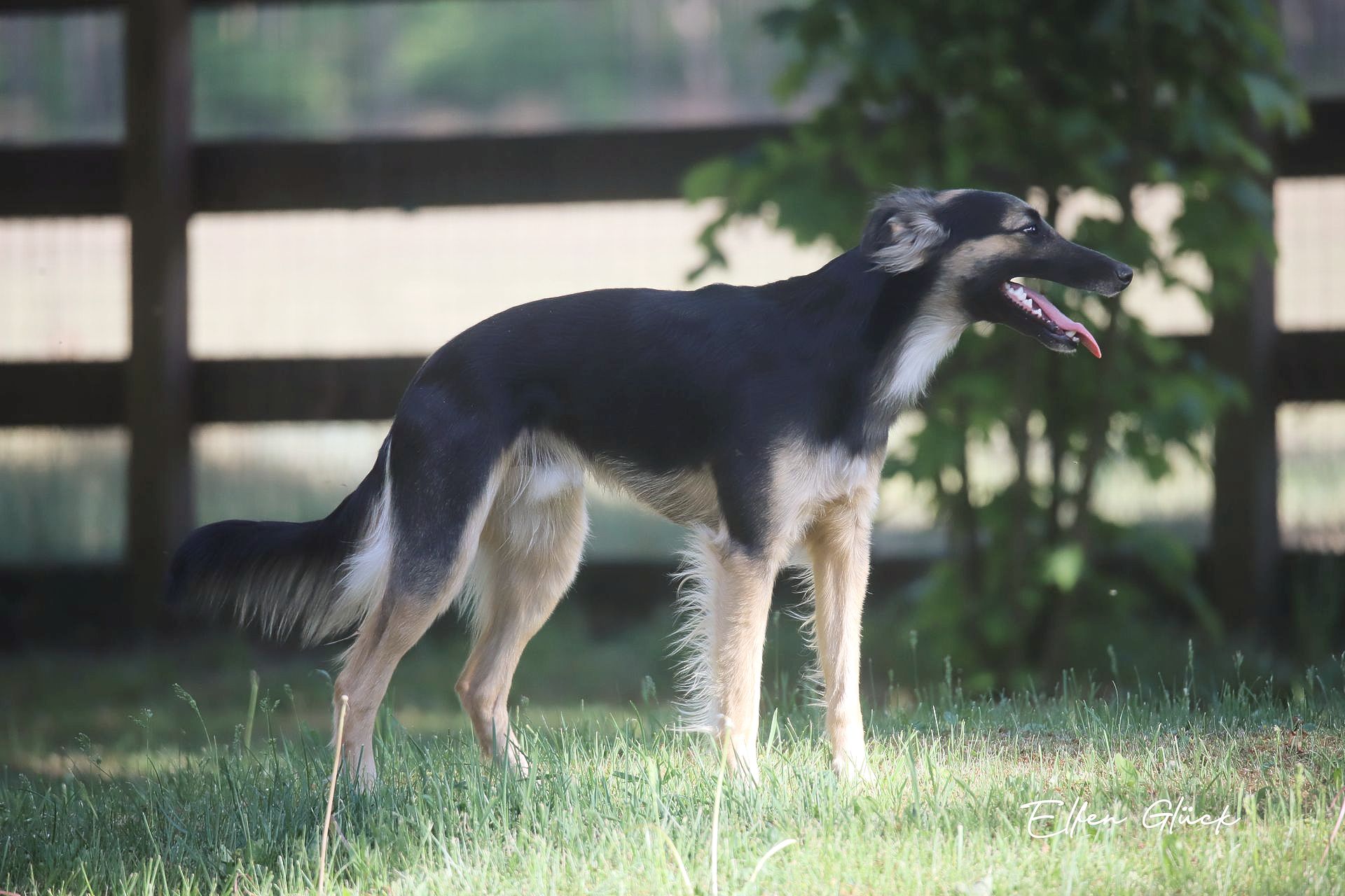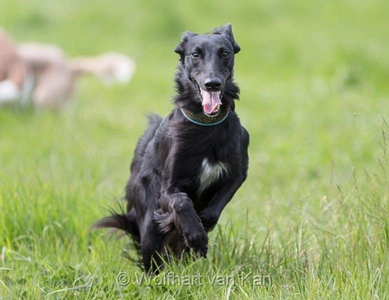 Schwarz oder auch black genannt, kann als Vollfarbe, mit Scheckung oder mit Abzeichen erscheinen. Die Abzeichen sind häufig an den Pfoten und Beinen, Brust und Rute zu finden.