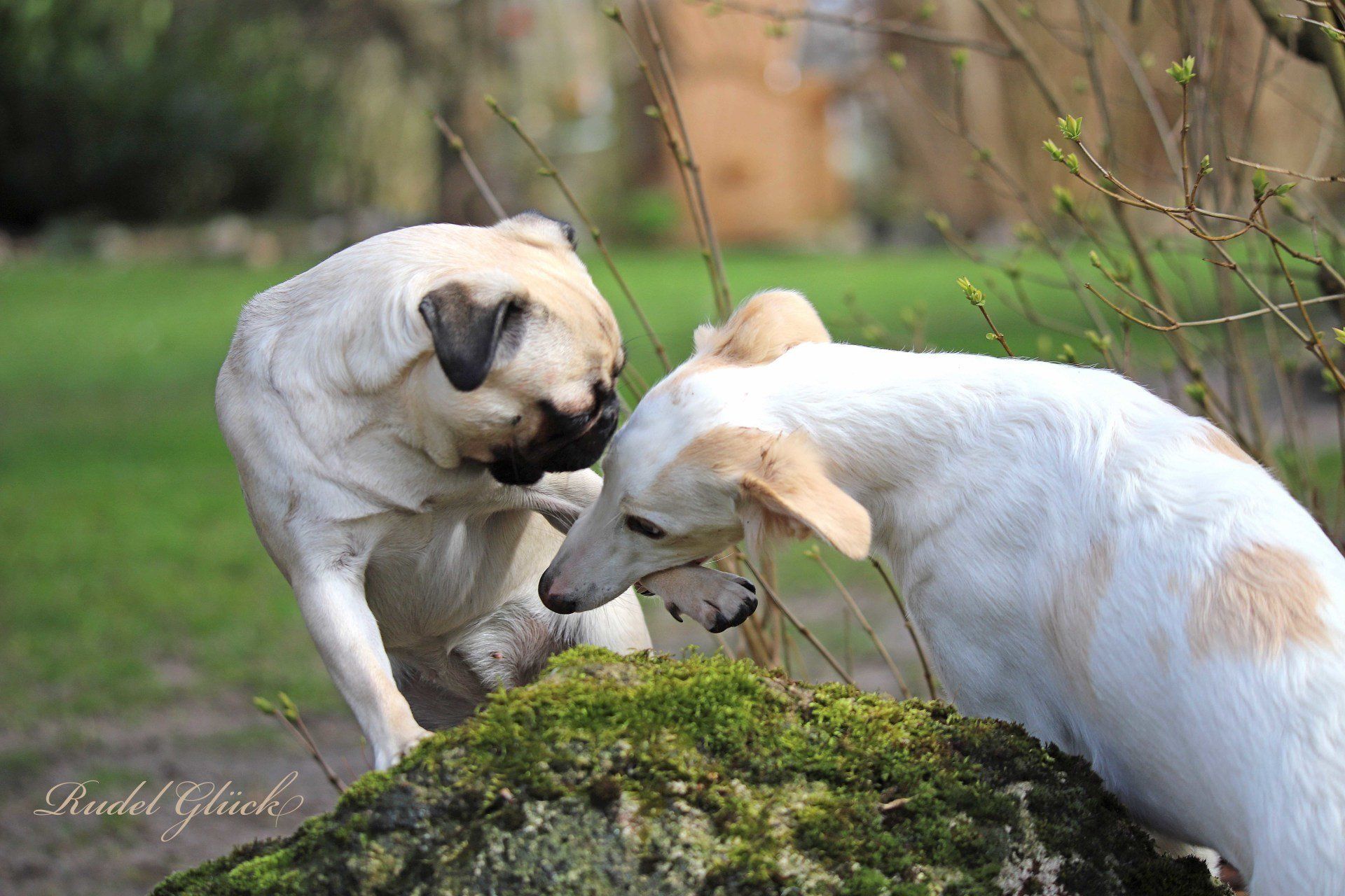 Hoewel deze twee rassen Mopshond en Silken Windsprite op het eerste gezicht zo totaal verschillend lijken, hebben ze één ding gemeen, het zijn erg vleiers, hartige honden, ... je kunt hun positieve energie niet weerstaan.