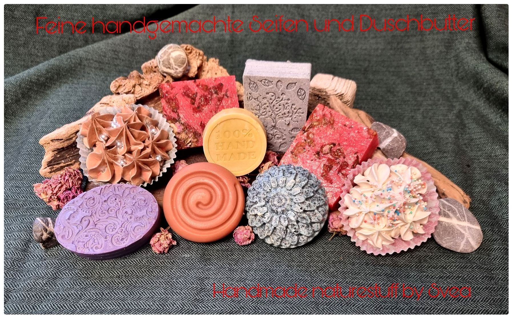 Feine selbstgemachte Seifen und Duschbutter. Wunderschöne Seifen in unterschiedlichsten Düften gibt es bei Svea. Sie war 2024 schon mit dabei und ihre Seifen sind individuell schön mit traumhaften Dekoren.